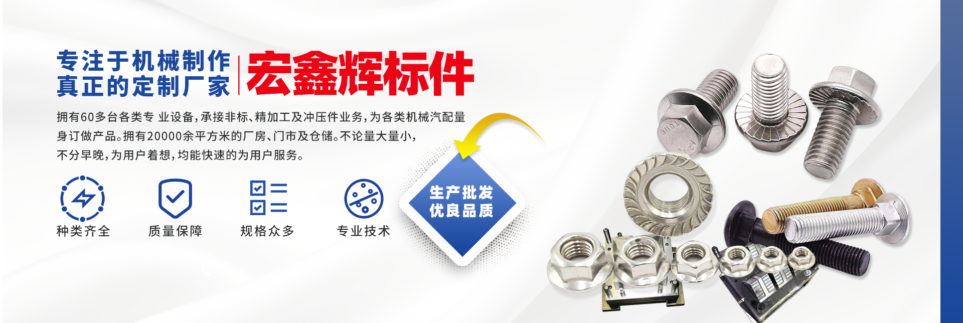 四川宏鑫輝標準件制造有限公司下設:南充市宏輝機械制造有限公司,南充市聚宏機電設備有限公司,公司始建于1994年。為了拓展市場,降低成本,本公司于2007年、2020年分別在南充、 成都、重慶創建了生產基地。擁有60多臺各類專 業設備,承接非標、精加工及沖壓件業務,為各 類機械汽配量身訂做產品。擁有20000余平方米的廠房、門市及倉儲。公司以誠信為本,竭誠為廣大客戶提供服務。不論量大量小,不分早晚,為用戶著想,均能快速的為用戶服務。